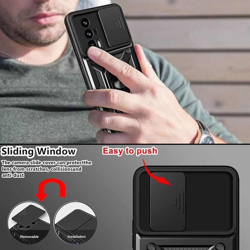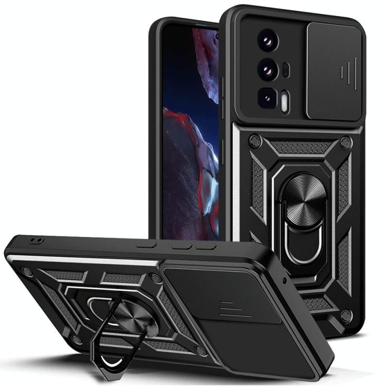 Για Xiaomi Poco F5 Pro συρόμενη κάμερα Cover Design TPU υβριδικό PC τηλέφωνο υπόθεση (Μαύρο)