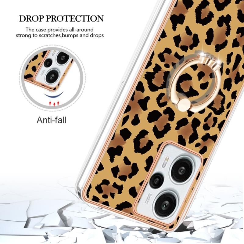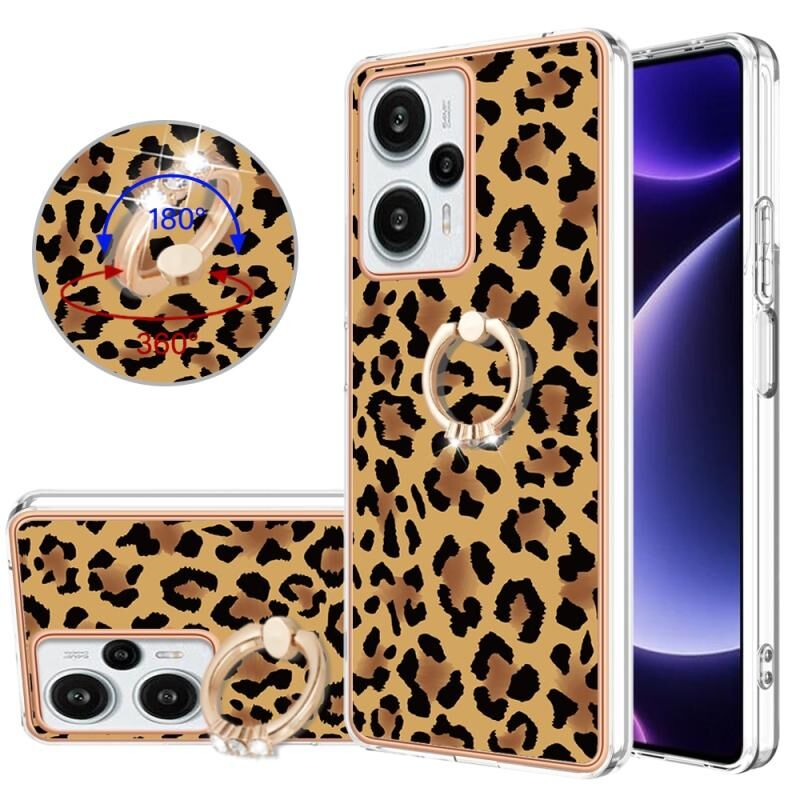 Θήκη τηλεφώνου με δακτύλιο στήριξης και ηλεκτρολυτική επιμετάλλωση διπλής όψης IMD για Xiaomi Poco F5 / Redmi Note 12 Turbo (εκτύπωση λεοπάρδαλης)