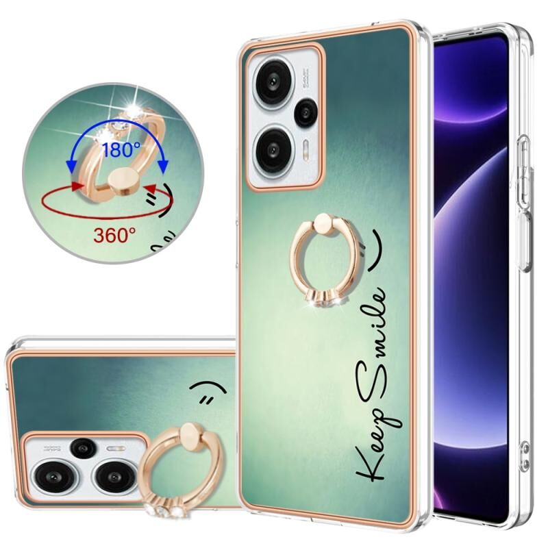 Θήκη τηλεφώνου με δακτύλιο και σχέδιο χαμόγελου για Xiaomi Poco F5 / Redmi Note 12 Turbo με ηλεκτρολυτική επιμετάλλωση και IMD διπλής όψης.