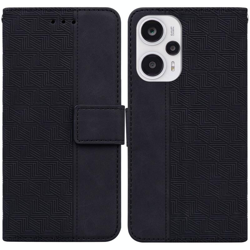 Για Xiaomi Poco F5 / Redmi Note 12 Turbo γεωμετρική ανάγλυφη δερμάτινη θήκη τηλεφώνου (μαύρο)