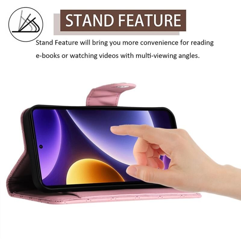 Για Xiaomi Poco F5 / Redmi Note 12 Turbo Rhombic υφή Flip δερμάτινη θήκη τηλεφώνου με κορδόνι (ροζ)