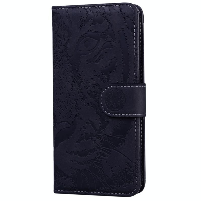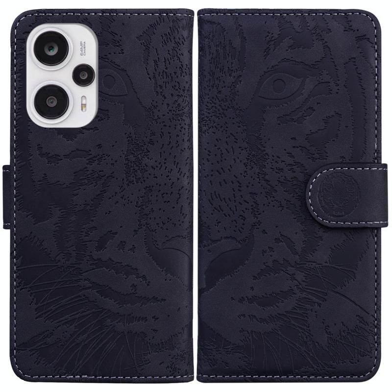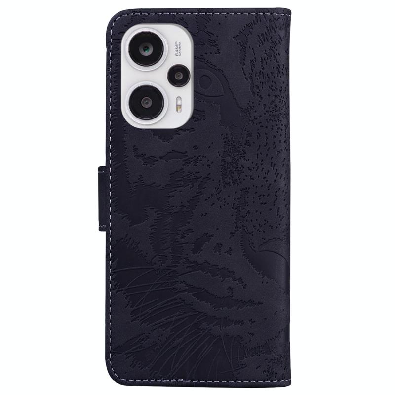 Θήκη δερμάτινη με ανάγλυφο σχέδιο τίγρης για Xiaomi Poco F5 / Redmi Note 12 Turbo (Μαύρο)