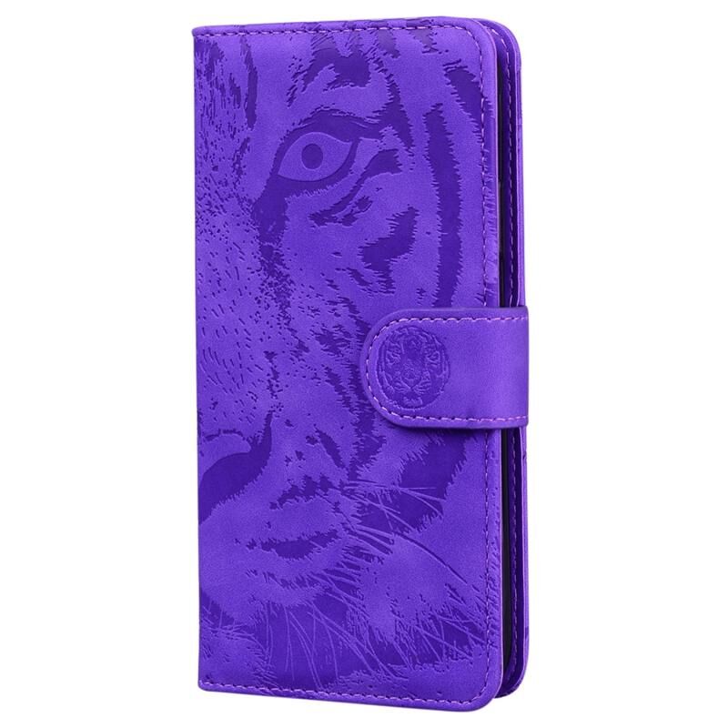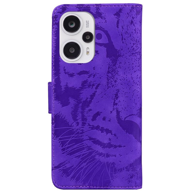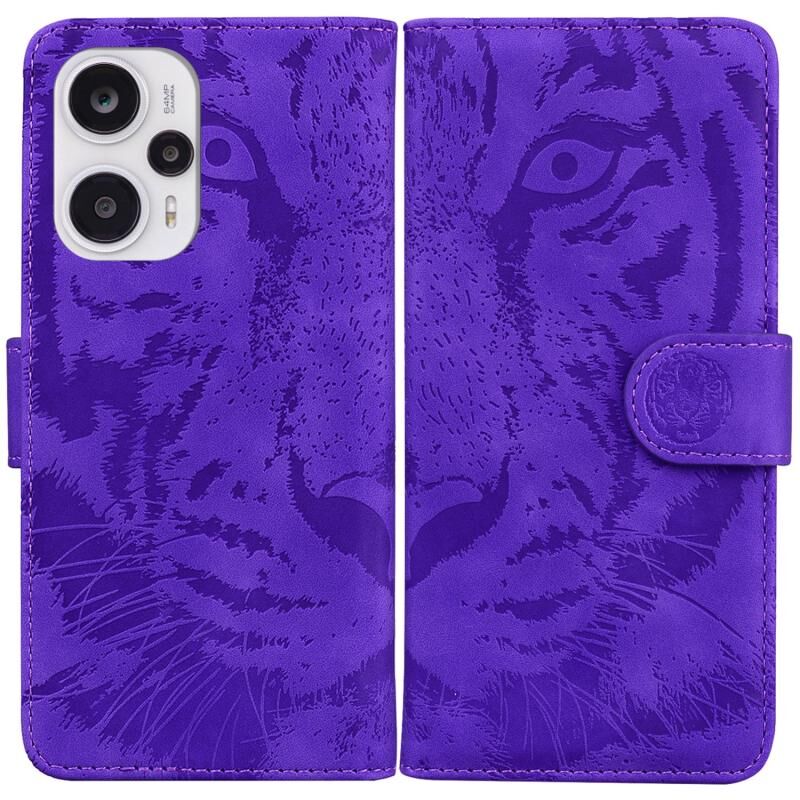 Θήκη δερμάτινη με ανάγλυφο σχέδιο τίγρης για Xiaomi Poco F5 / Redmi Note 12 Turbo (Μωβ)