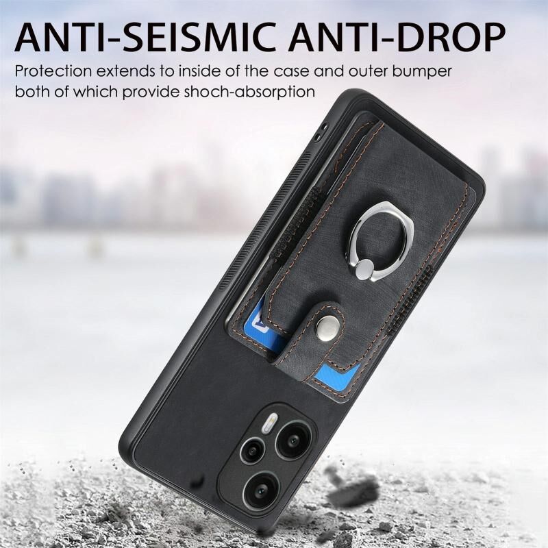 Για Xiaomi Poco F5 Ρετρό δέρμα αίσθηση δαχτυλίδι κάρτας πορτοφόλι υπόθεση τηλεφώνου (Μαύρο)