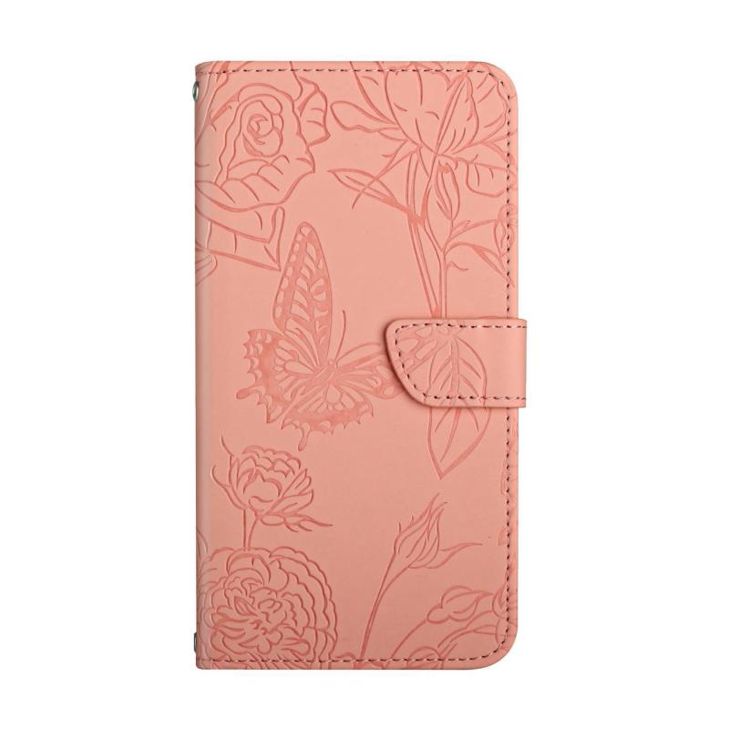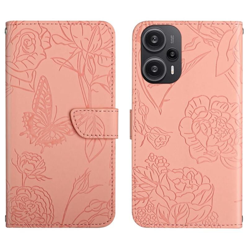 Θήκη τηλεφώνου δερμάτινη, τύπου flip, με ανάγλυφο σχέδιο πεταλούδας για Xiaomi Poco F5 (Ροζ)