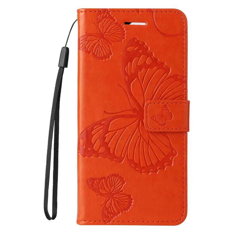 Για Xiaomi Poco F6 3D πεταλούδα ανάγλυφο μοτίβο Flip υπόθεση τηλεφώνου δέρμα (Πορτοκαλί)