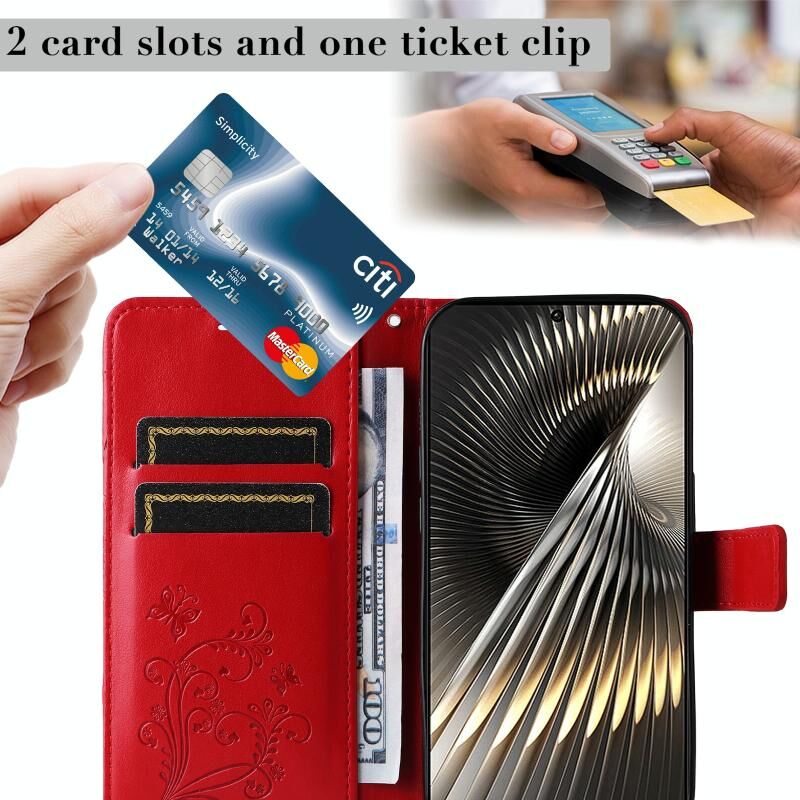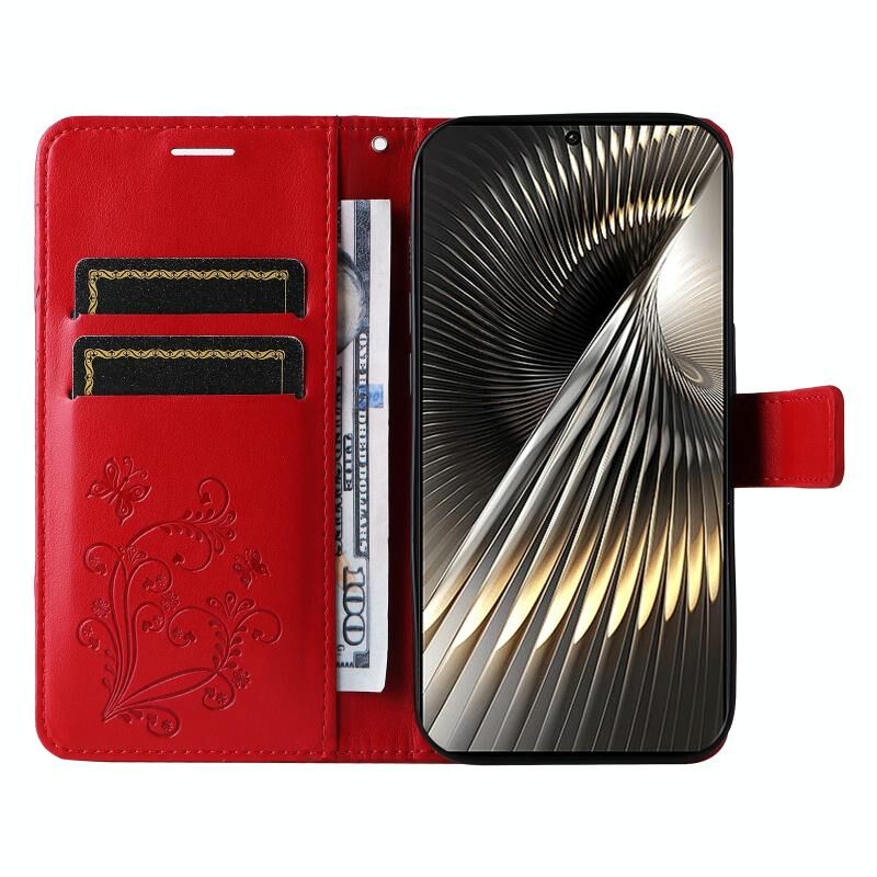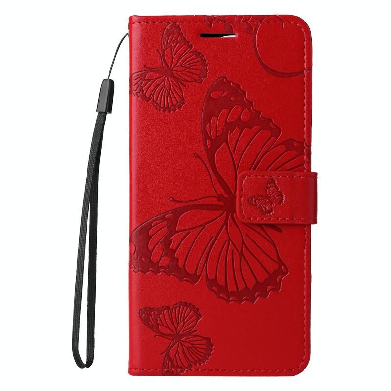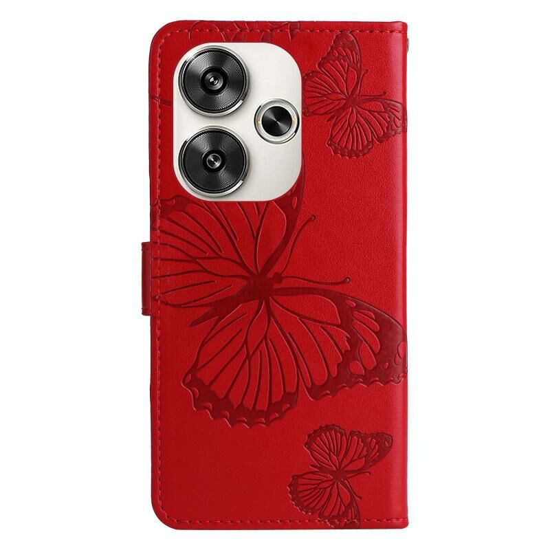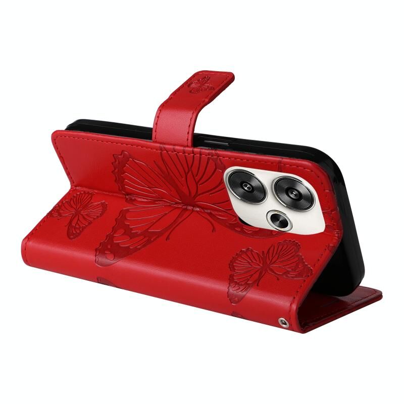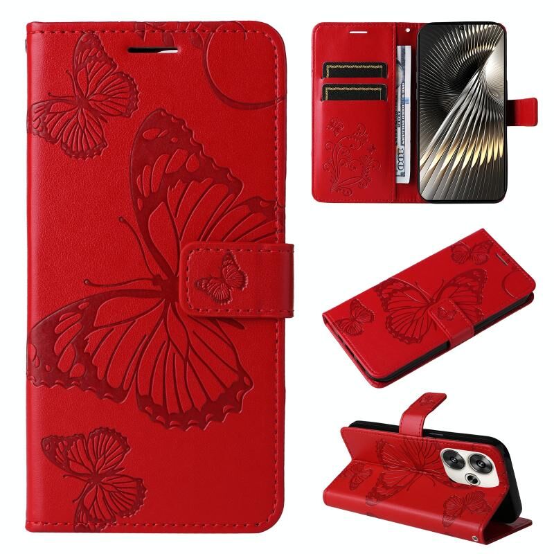 Για Xiaomi Poco F6 3D πεταλούδα ανάγλυφο μοτίβο Flip υπόθεση τηλεφώνου δέρμα (κόκκινο)