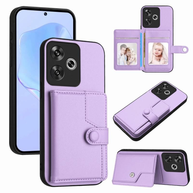 Για Xiaomi Poco F6 5G Ινδία Button Card Bag RFID Anti-theft τηλέφωνο υπόθεση (μωβ)