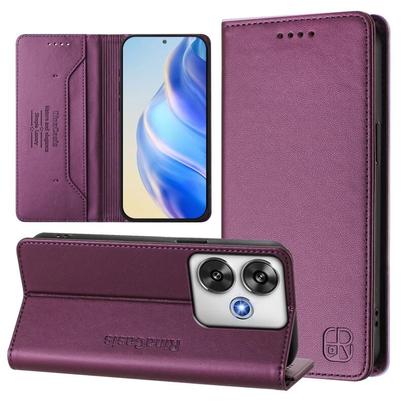Θήκη τηλεφώνου δερμάτινη με μαγνητική απορρόφηση και προστασία RFID για Xiaomi Poco F6 5G RC01, διπλού τύπου (Βιολετί)