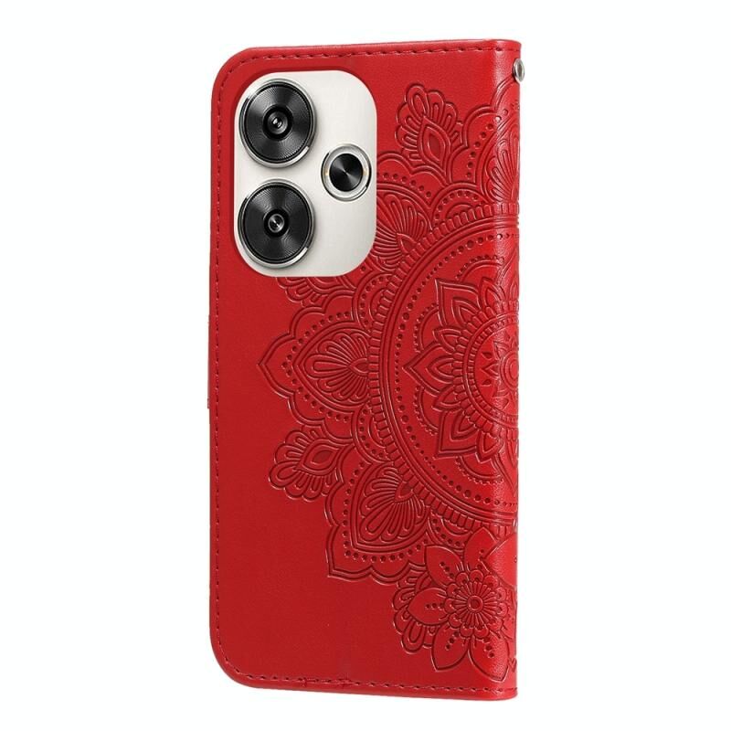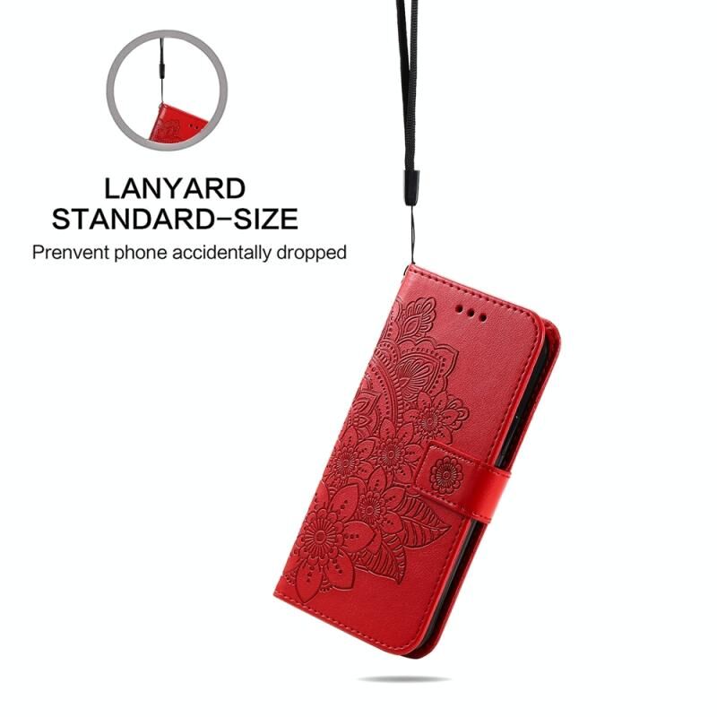 Για Xiaomi Poco F6 7-πέταλο λουλούδια ανάγλυφη δερμάτινη θήκη τηλεφώνου (κόκκινο)