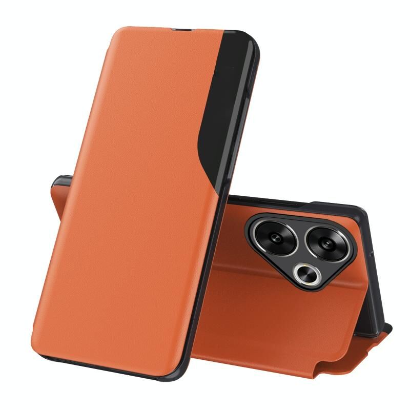 Για Xiaomi Poco F6 Attraction Flip κάτοχος δερμάτινη θήκη τηλεφώνου (Πορτοκαλί)
