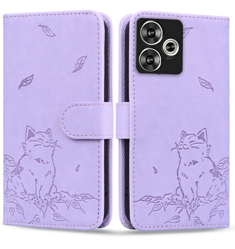 Θήκη τηλεφώνου από δέρμα με ανάγλυφο σχέδιο χαριτωμένης γάτας για Xiaomi Poco F6 (Γαλάζιο του ουρανού)
