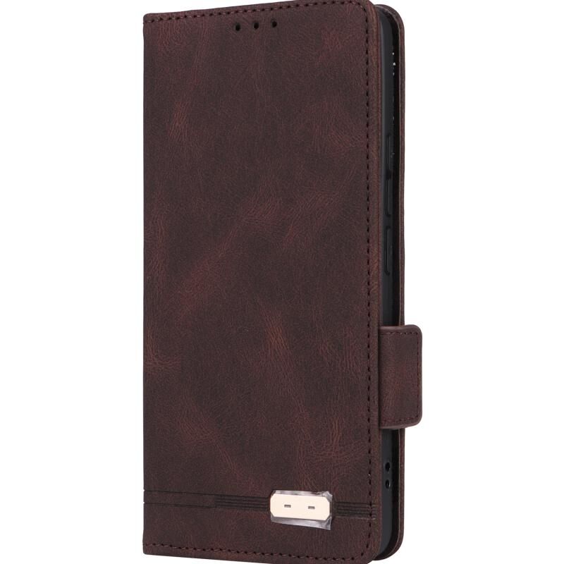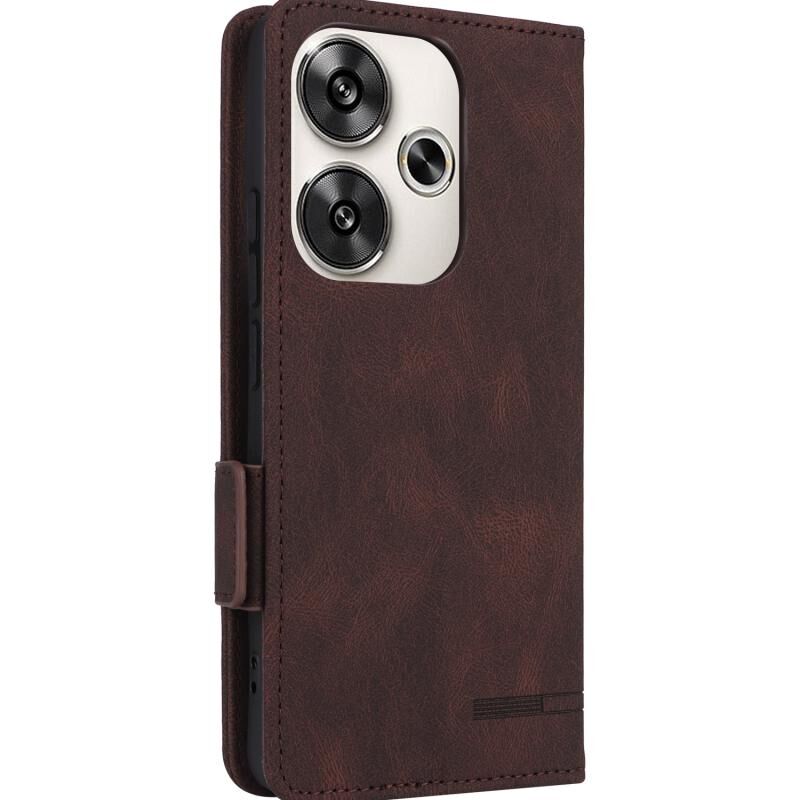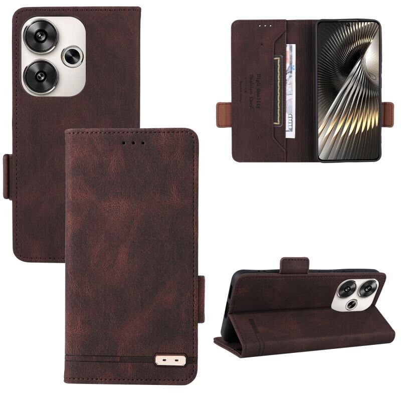 Για Xiaomi Poco F6 Μαγνητικό κούμπωμα Δερμάτινη θήκη τηλεφώνου (καφέ)