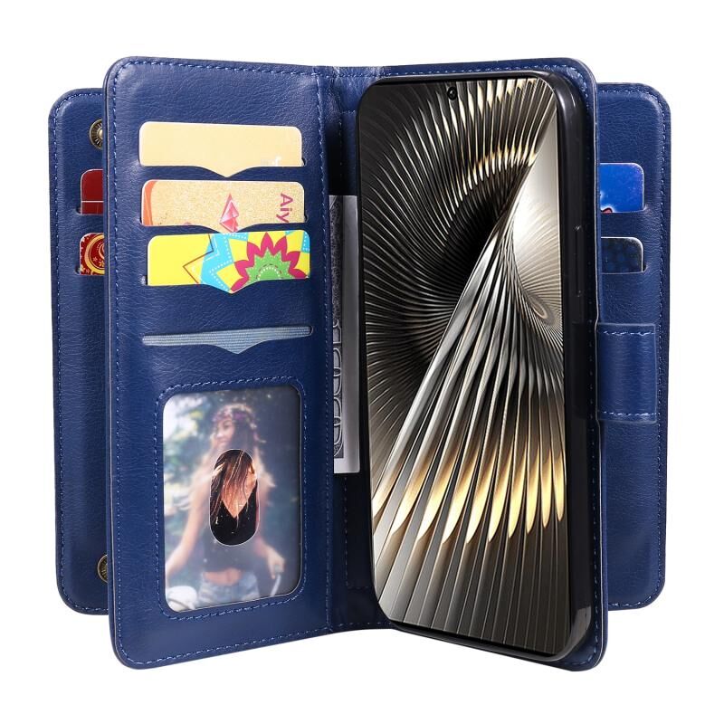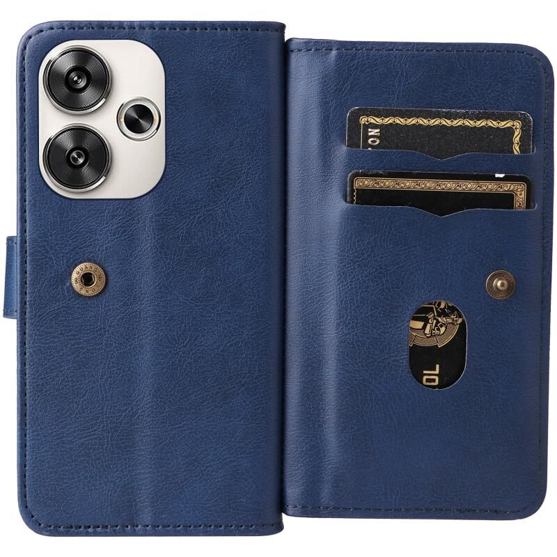 Για Xiaomi Poco F6 Πολυλειτουργικό πορτοφόλι 10 υποδοχές καρτών Δερμάτινη θήκη τηλεφώνου (Σκούρο μπλε)