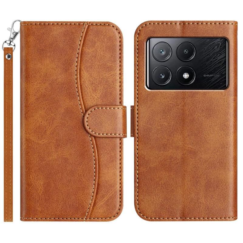 Θήκη τηλεφώνου δέρμα σε σχήμα S διπλά διπλωμένη για Xiaomi Poco F6 Pro 5G (Καφέ)