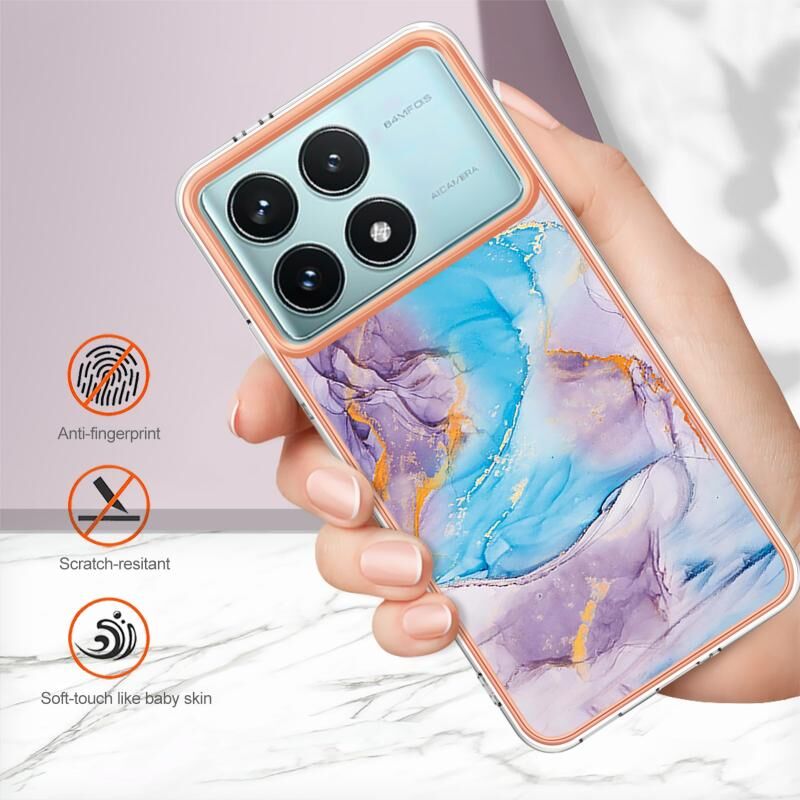Για Xiaomi Poco F6 Pro 5G Electroplating IMD TPU τηλέφωνο υπόθεση (μπλε μάρμαρο)