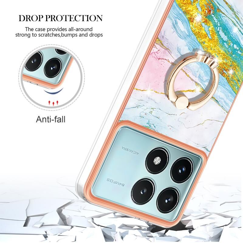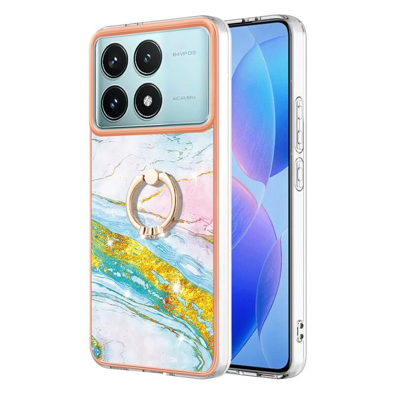 Θήκη κινητού τηλεφώνου για Xiaomi Poco F6 Pro 5G με Ηλεκτρολυτική μαρμάρινη τεχνολογία IMD TPU με Δακτύλιο Στήριξης (Λευκό 006)