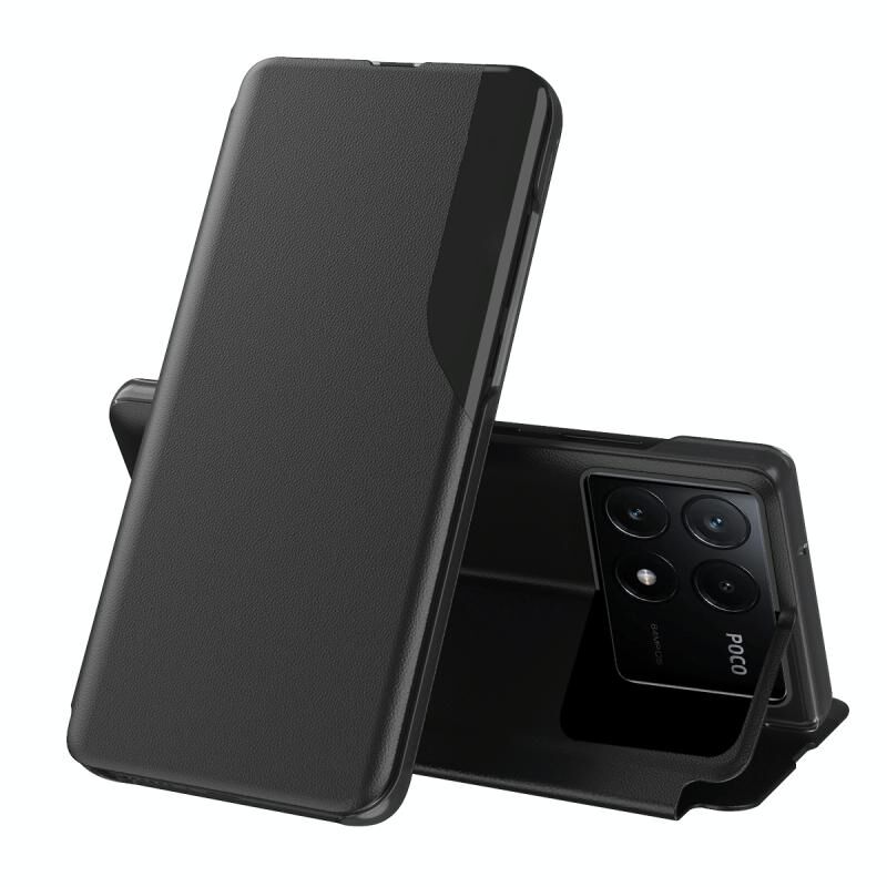 Για Xiaomi Poco F6 Pro Attraction Flip κάτοχος δερμάτινη θήκη τηλεφώνου (μαύρο)