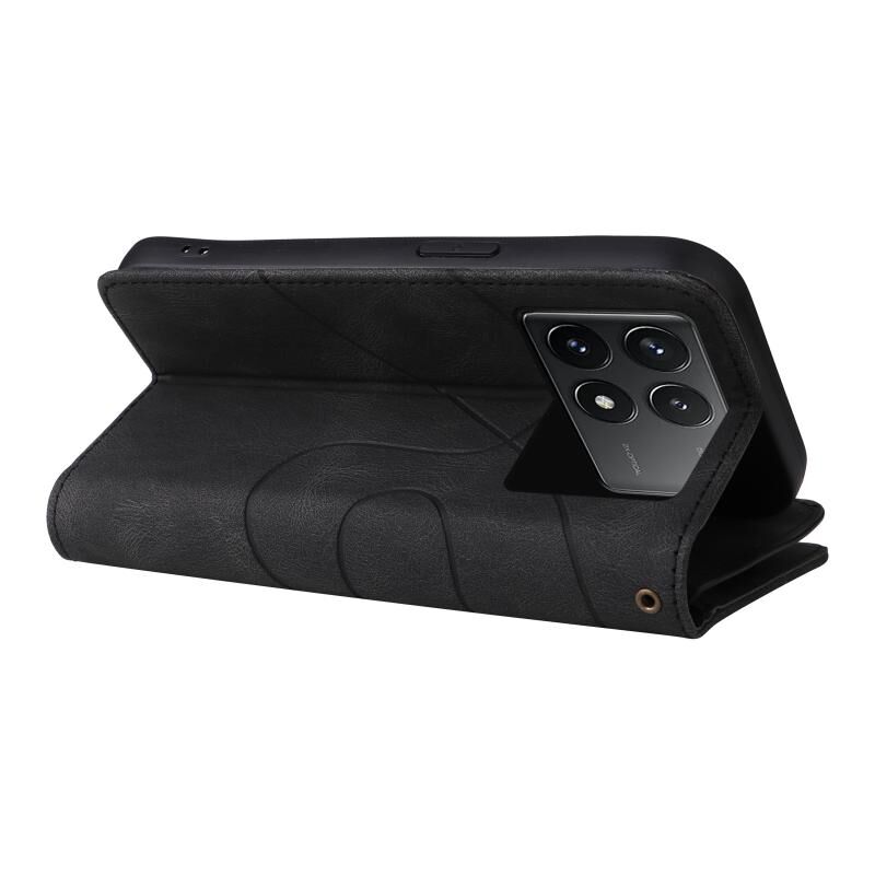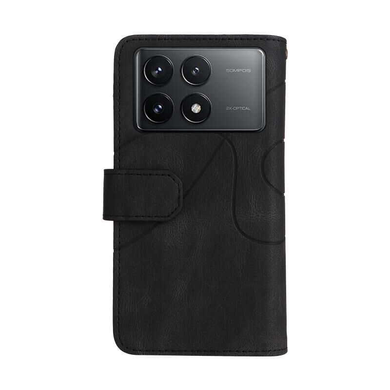 Θήκη τηλεφώνου δερμάτινη με φερμουάρ και θήκες για κάρτες, διχρωμία, για Xiaomi Poco F6 Pro (Μαύρο)