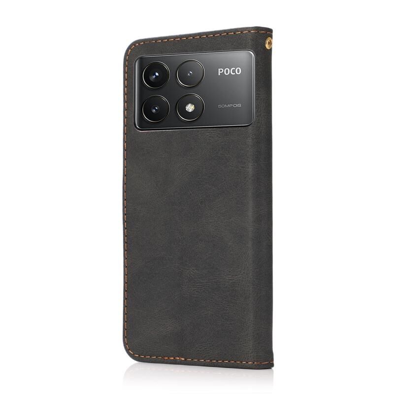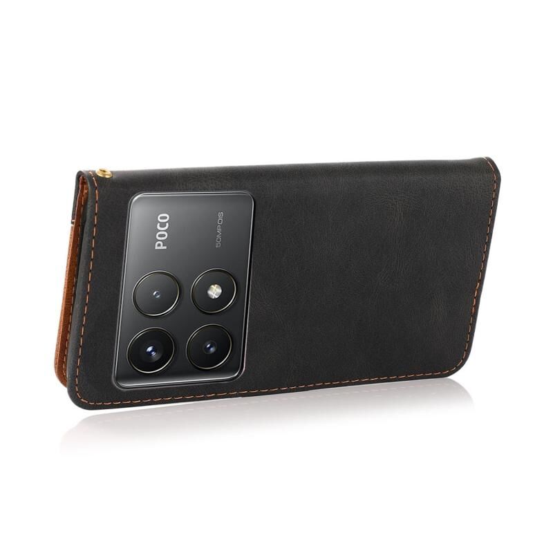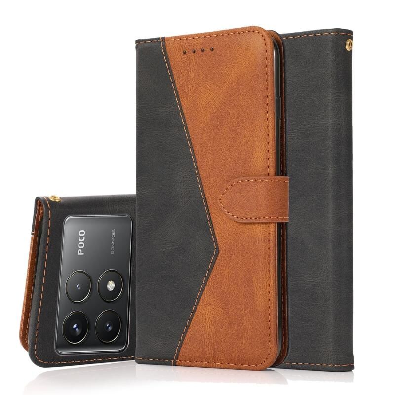 Για Xiaomi Poco F6 Pro Διπλό χρώμα ραφή δερμάτινη θήκη τηλεφώνου (μαύρο καφέ)