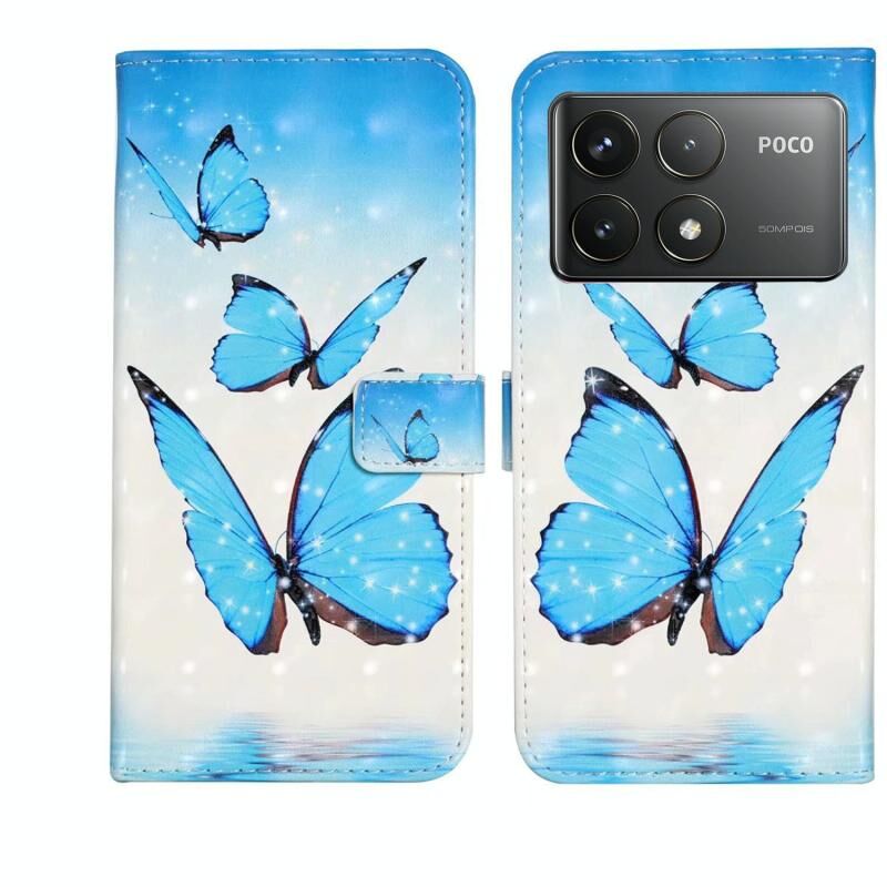 Θήκη τηλεφώνου δερμάτινη με ανάγλυφο σχέδιο 3D για Xiaomi Poco F6 Pro (3 Πεταλούδες)