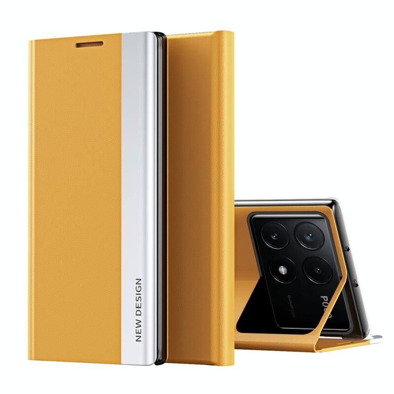 Για Xiaomi Poco F6 Pro Side Electroplated προσρόφηση δερμάτινη θήκη τηλεφώνου (κίτρινο)