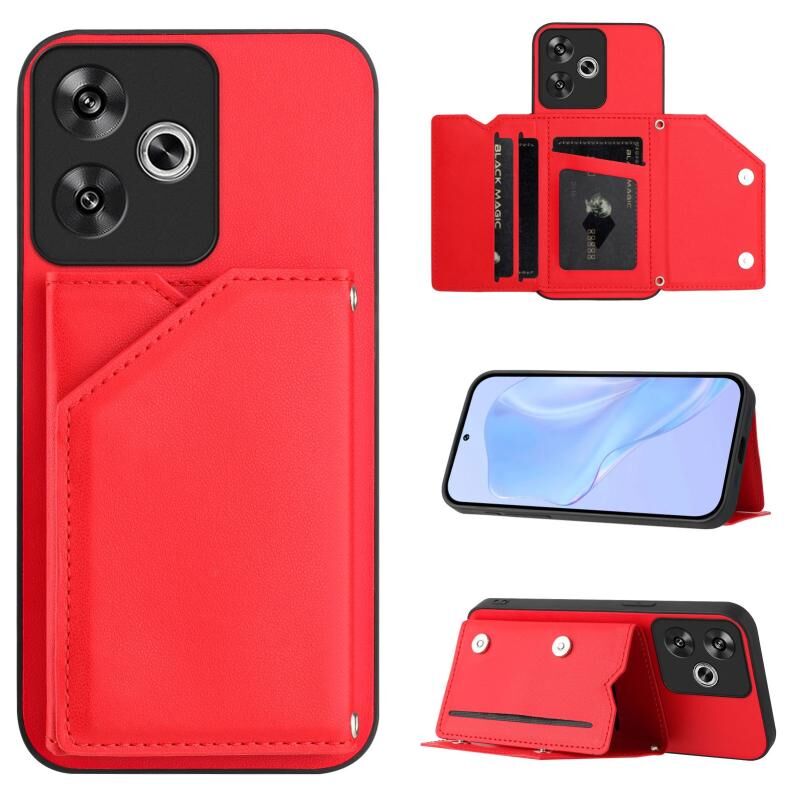 Για Xiaomi Poco F6 Skin Feel Τέσσερις υποδοχές κάρτας υπόθεση τηλεφώνου με λουράκι καρπού (κόκκινο)