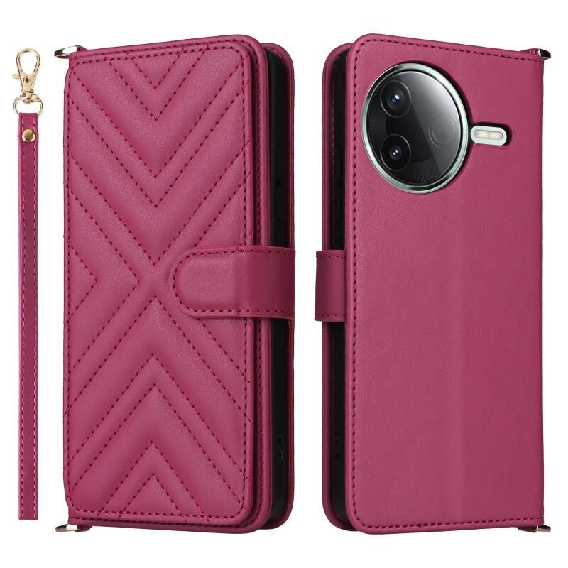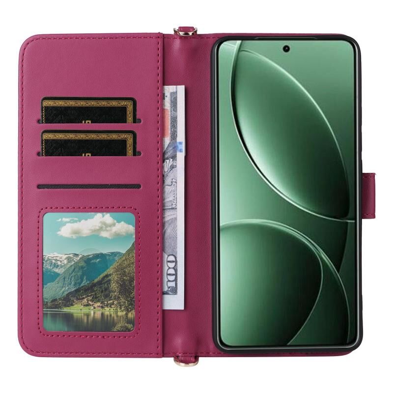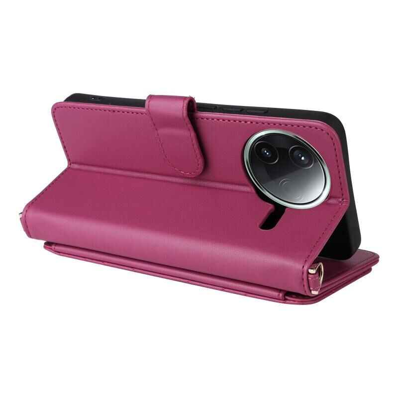 Θήκη τηλεφώνου από δέρμα με 6 υποδοχές καρτών και λουρί καρπού για Xiaomi Poco F7 Pro 5G / F7 Ultra (Ροζ)