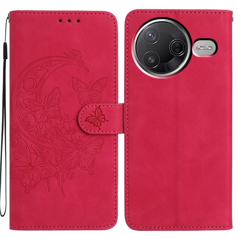 For Xiaomi Poco F7 Pro Moonlit Butterfly Dance Pattern Embossed Leather Phone Case(Rose Red)