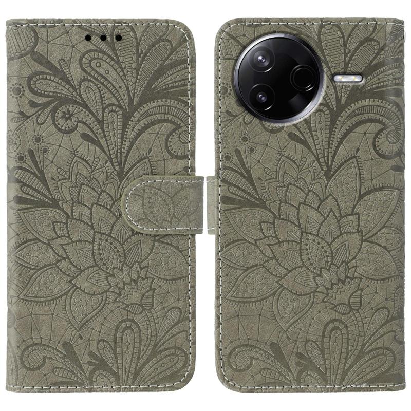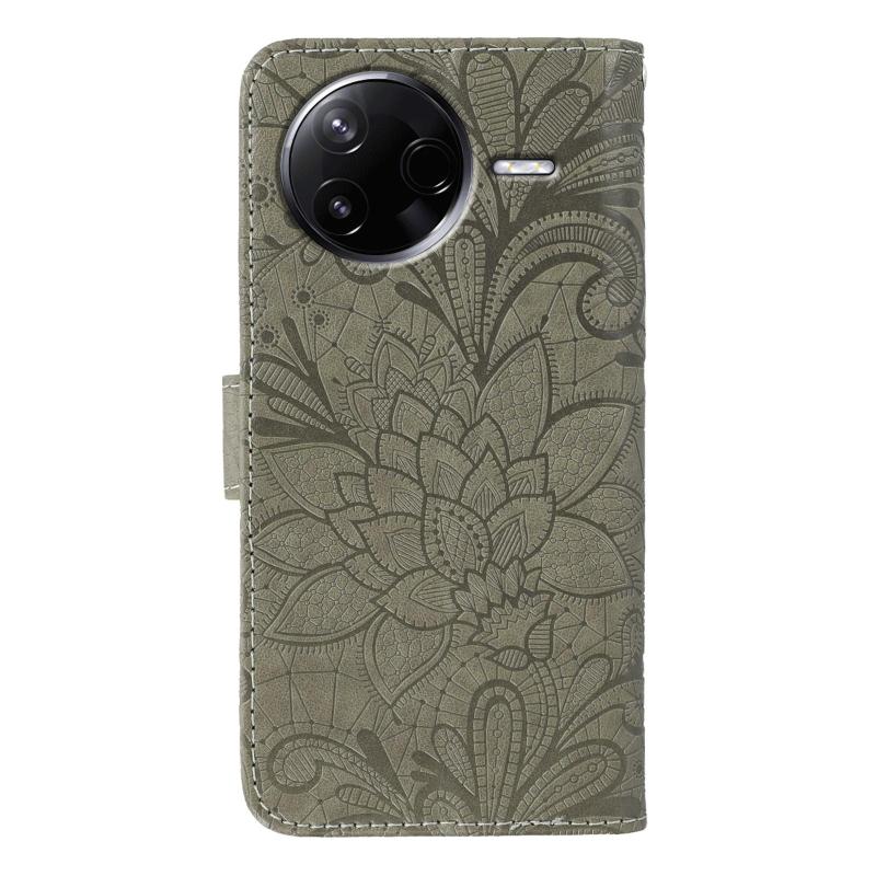 For Xiaomi Poco F7 Pro / Redmi K80 Lace Flower Embossing Flip Leather Phone Case(Grey)