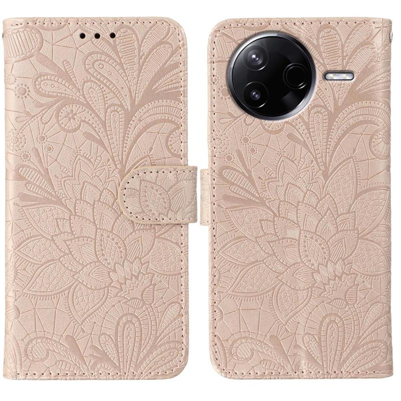 For Xiaomi Poco F7 Pro / Redmi K80 Lace Flower Embossing Flip Leather Phone Case(Rose Gold)