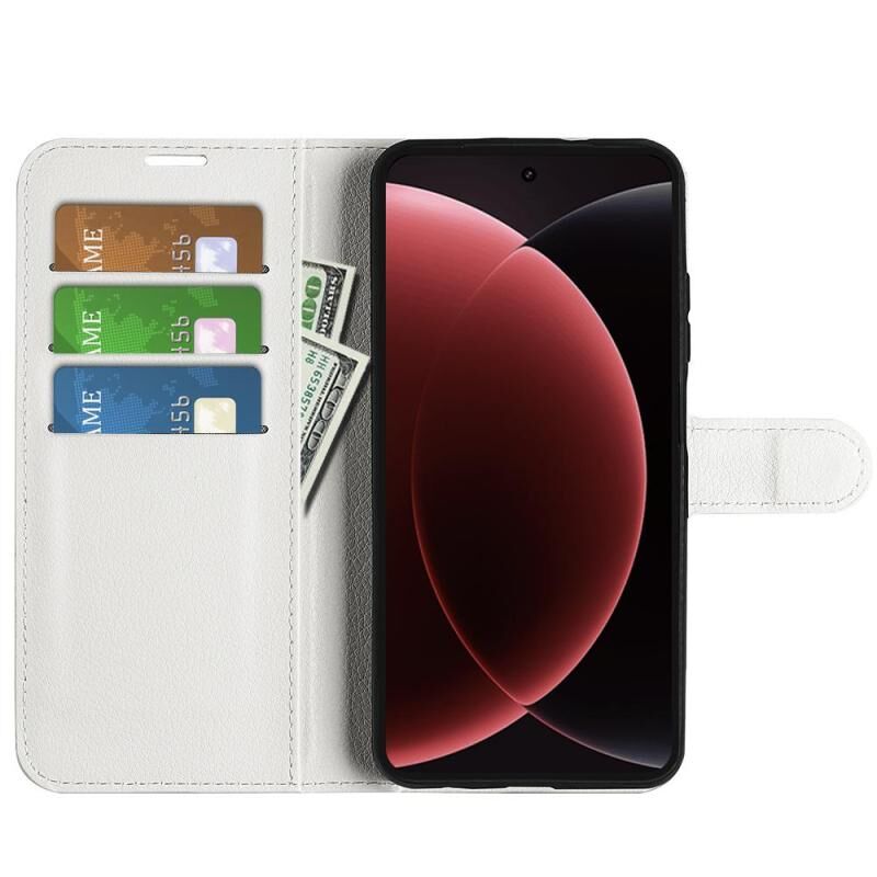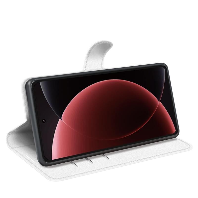 Θήκη τηλεφώνου από δέρμα με οριζόντιο άνοιγμα και υφή λυτσί για Xiaomi Poco F7 Pro / Redmi K80 με βάση στήριξης (Μαύρο)