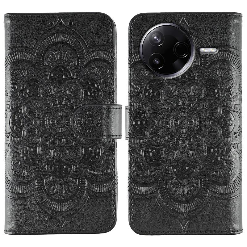 For Xiaomi Poco F7 Pro / Redmi K80 Sun Mandala Embossing Pattern Phone Leather Case(Black)