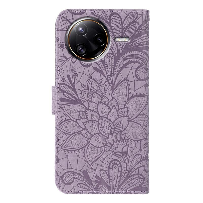 Θήκη τηλεφώνου από δέρμα με ανάγλυφο σχέδιο δαντέλας λουλουδιών για Xiaomi Poco F7 Ultra / Redmi K80 Pro (Μωβ)