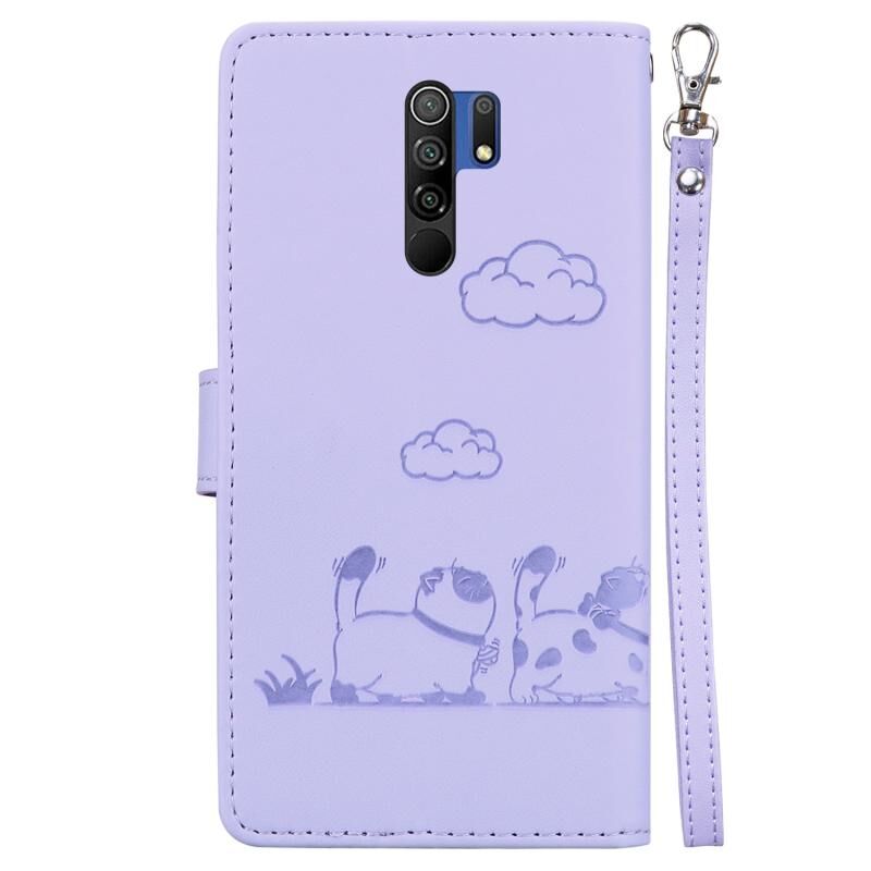 Θήκη τηλεφώνου από δέρμα με χαριτωμένες γάτες για Xiaomi Poco M2 (Μωβ)