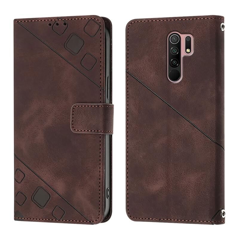 Για Xiaomi Poco M2 Global / Redmi 9 δέρμα αίσθηση ανάγλυφη δερμάτινη θήκη τηλεφώνου (καφέ)