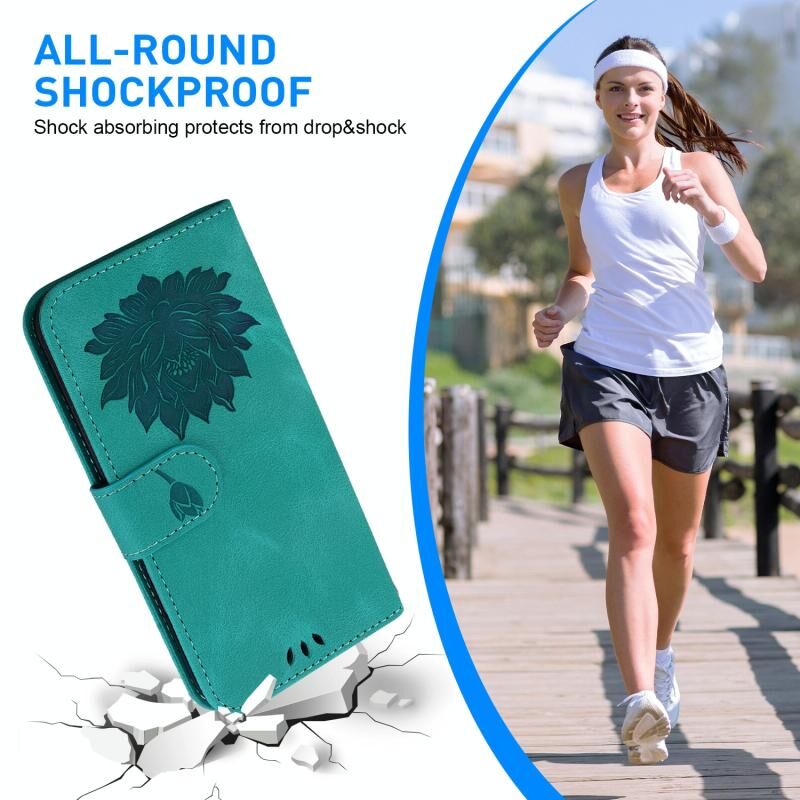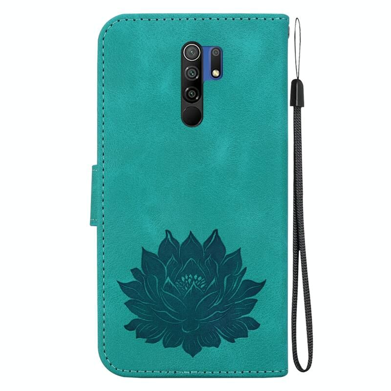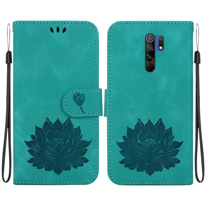 Για Xiaomi Poco M2 Lotus ανάγλυφη δερμάτινη θήκη τηλεφώνου (Πράσινο)