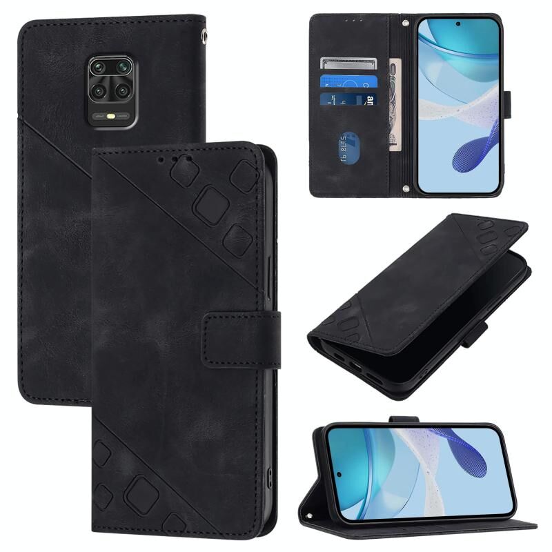 Για το Xiaomi Poco M2 Pro / Redmi Note 10 Lite Skin Feel ανάγλυφη δερμάτινη θήκη τηλεφώνου (Μαύρο)