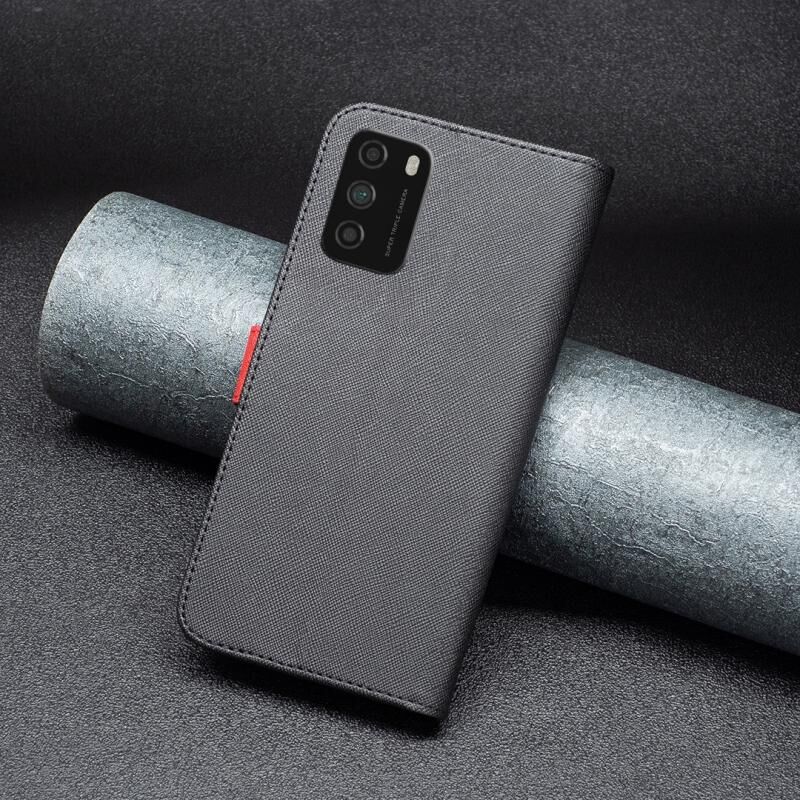 Για Xiaomi Poco M3 BF13 Χρώμα ταιριάζει με σταυρό υφή δερμάτινη θήκη τηλεφώνου (Μαύρο)