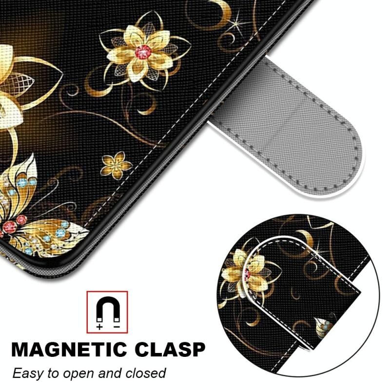 Θήκη για Xiaomi Poco M3 με πολύχρωμο σχέδιο, υφή σταυρού, οριζόντιο άνοιγμα, από δερματίνη PU με βάση στήριξης, θήκες για κάρτες, πορτοφόλι & λουρί (Ροζ Λουλούδια, Γέφυρα του Πύργου). (Χρυσή Πεταλούδα Διαμάντι)
