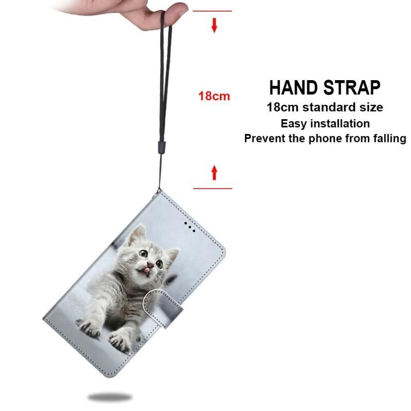 Θήκη για Xiaomi Poco M3 με πολύχρωμο σχέδιο, υφή σταυρού, οριζόντιο άνοιγμα, από δερματίνη PU με βάση στήριξης, θήκες για κάρτες, πορτοφόλι & λουρί (Ροζ Λουλούδια, Γέφυρα του Πύργου). (Μικρή γκρι γάτα)