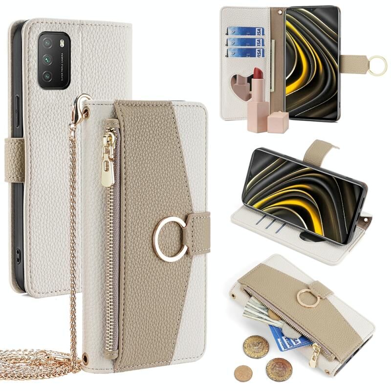 Για Xiaomi Poco M3 Crossbody Litchi Υφή δέρμα υπόθεση τηλεφώνου (Λευκό)