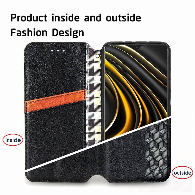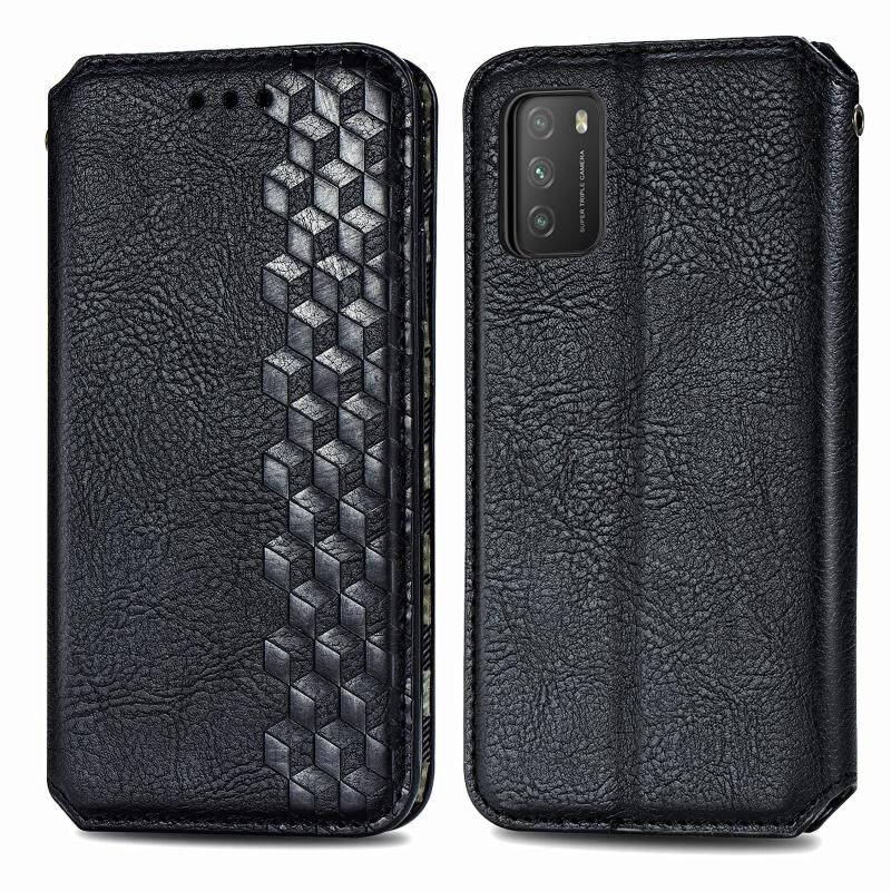 Για Xiaomi POCO M3 Cubic Grid Pressed Horizontal Flip Μαγνητική PU δερμάτινη θήκη με θήκη & υποδοχές καρτών & πορτοφόλι (Μαύρο)