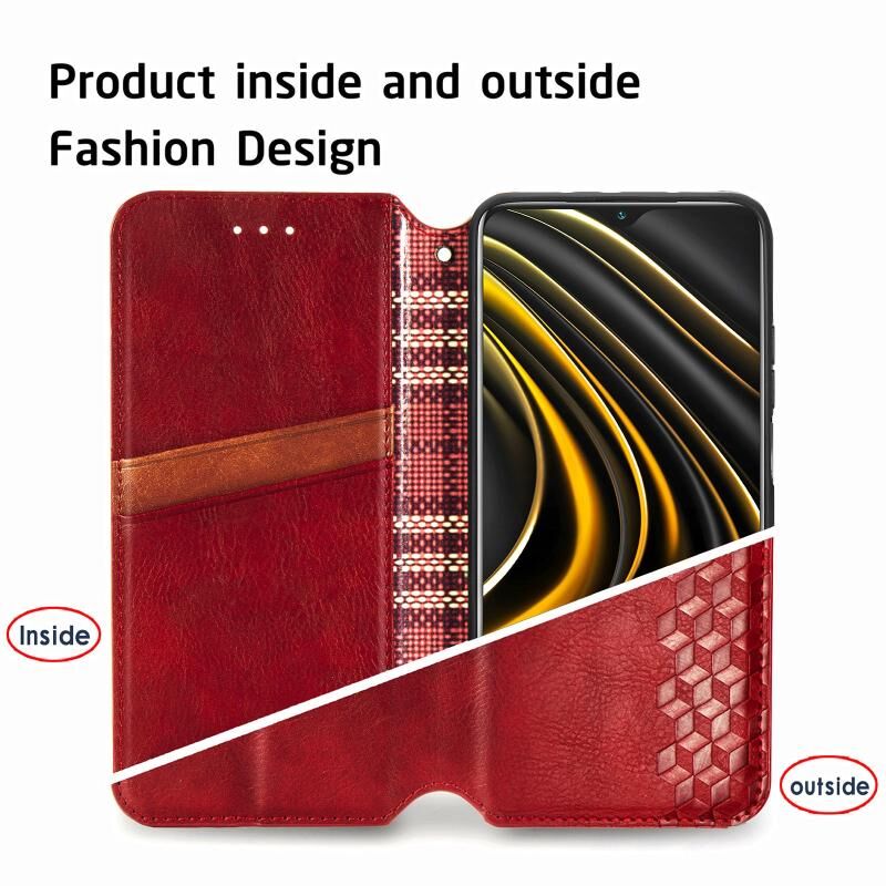 Για Xiaomi POCO M3 Cubic Grid Pressed Horizontal Flip Μαγνητική PU δερμάτινη θήκη με θήκη για κάρτες & υποδοχές & πορτοφόλι (κόκκινο)