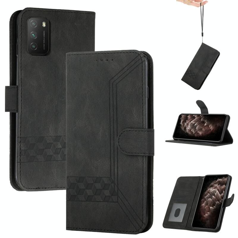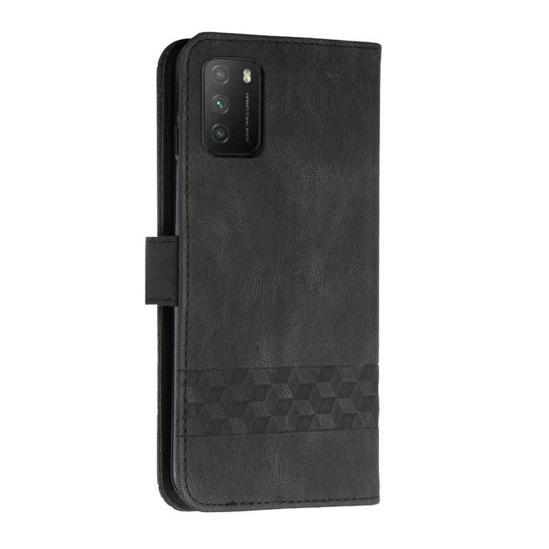 Για Xiaomi Poco M3 Θήκη Δερμάτινη με Υφή Cubic Flip (Μαύρο)