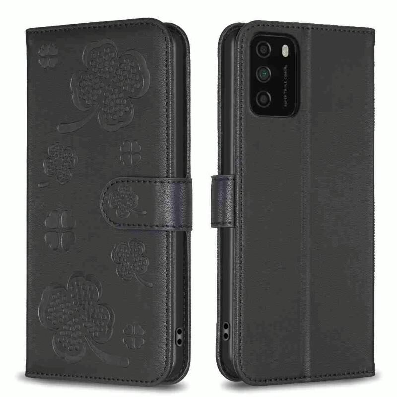 Για Xiaomi Poco M3 τετράφυλλο ανάγλυφη δερμάτινη θήκη τηλεφώνου (Μαύρο)