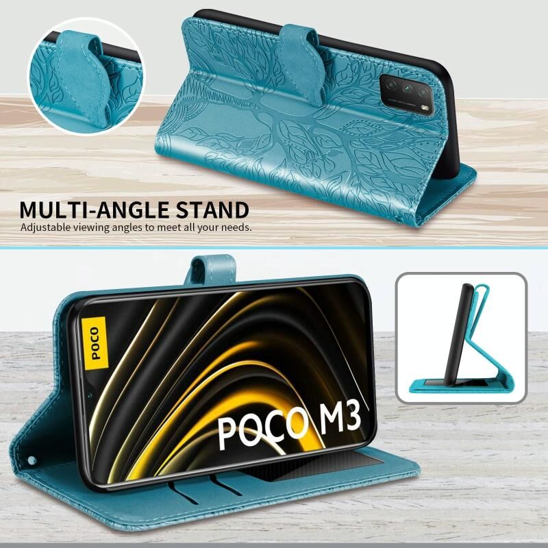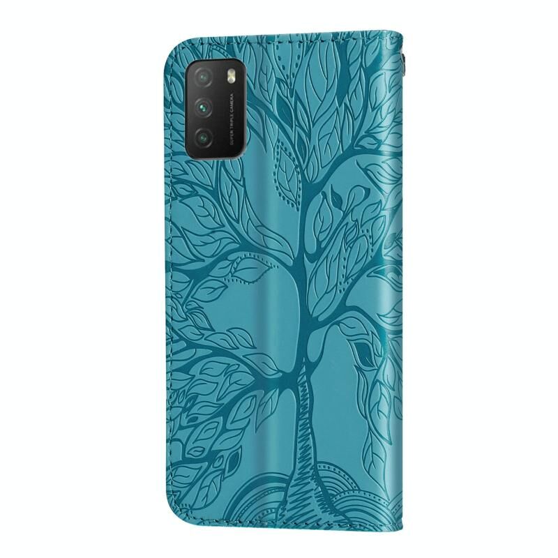Για Xiaomi Poco M3 Life of Tree ανάγλυφο μοτίβο οριζόντια Flip δερμάτινη θήκη με κάτοχο & υποδοχή για κάρτες & πορτοφόλι & πλαίσιο φωτογραφιών & κορδόνι (Γαλάζια λίμνης)