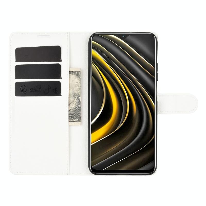 Για Xiaomi Poco M3 Litchi Υφή Οριζόντια Flip Προστατευτική θήκη με θήκη & υποδοχές καρτών & πορτοφόλι (λευκό)