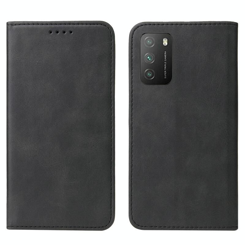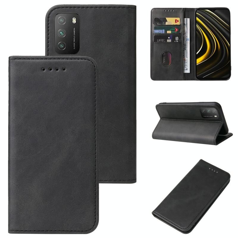 Για Xiaomi Poco M3 Μαγνητικό κλείσιμο δερμάτινη θήκη τηλεφώνου (Μαύρο)