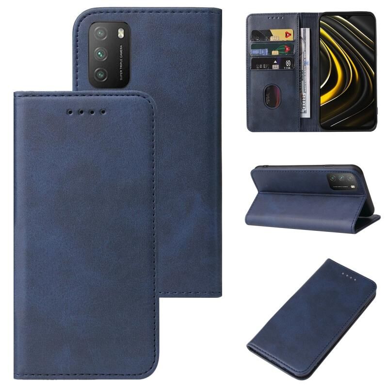 Για Xiaomi Poco M3 Μαγνητικό κλείσιμο δερμάτινη θήκη τηλεφώνου (μπλε)